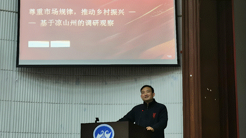 四川大学经济学院教授、博士生导师贺立龙以“尊重市场规律,推动乡村振兴 —— 基于凉山州的调研观察”为题,系统梳理了我国乡村扶贫的现状与挑战。他结合自身在凉山州的调研观察,强调需通过优化基础设施、强化公共服务最终促进乡村经济发展,帮助乡村产业转型。贺老师还提出,在乡村扶贫领域普遍存在的问题,包括现代农业产业体系不完善、资金投放问题,并呼吁青年学子关注乡村基层发展、实地调研,亲自“将论文写在祖国大地上。
