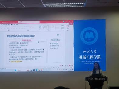 2025年5月19日19:30,由四川大学研究生工作部主办,四川大学研究生团委研究生会,四川大学研究生党员学长服务团,四川大学卓越工程师学院研究生团支研究生分会共同承办的“研究生党员学长说”(第四期)交流活动在四川大学机械工程学院323教室举行。本次活动主题为“科研共进,职业导航——党员学长面对面座谈会”,旨在通过跨学科交流提升同学们的创新思维与科研能力,明确生涯规划的前瞻性和重要性,并帮助同学们夯实专业根基、构建自身的职业认知体系。
