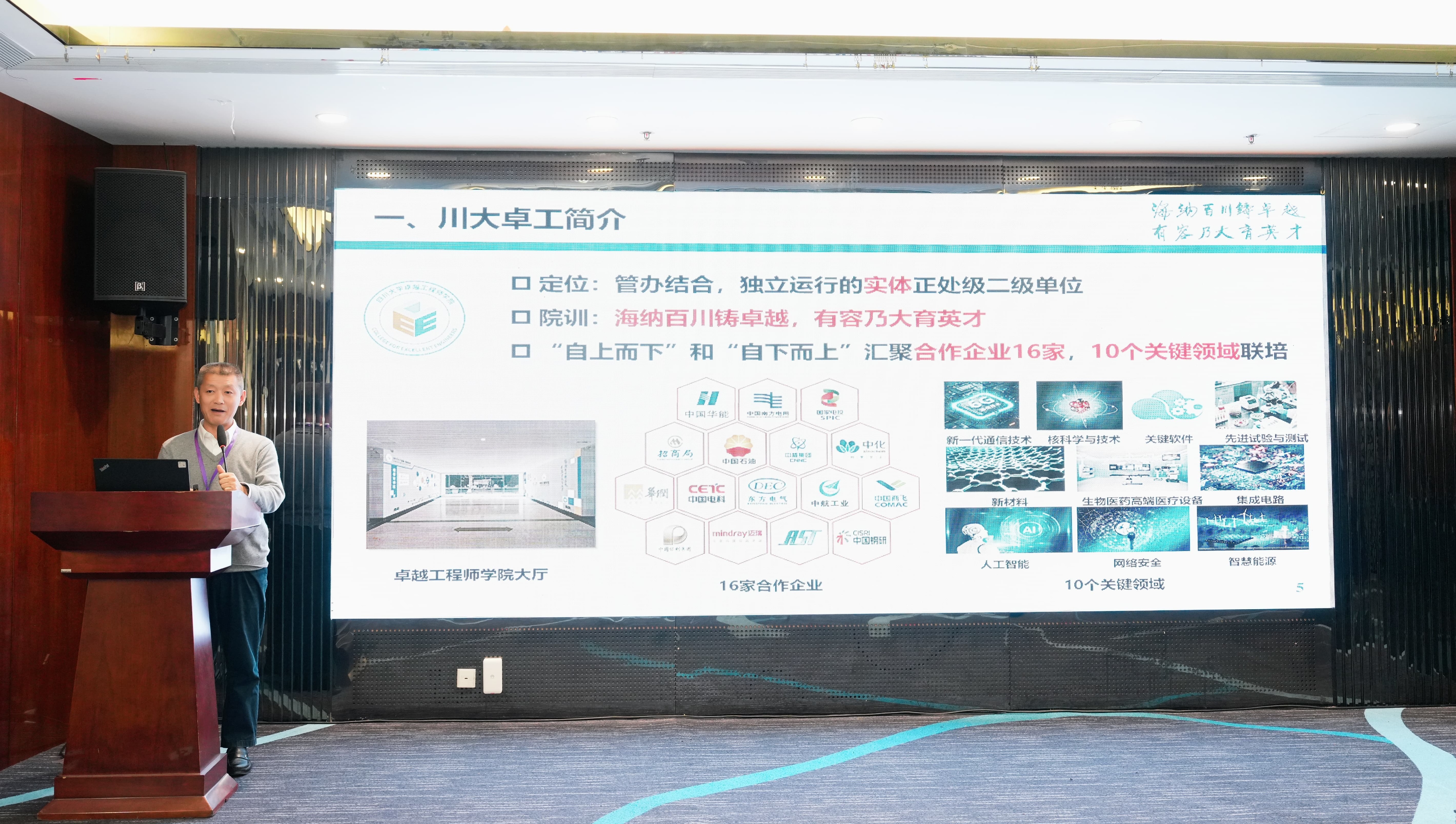 四川大学受邀参会,卓越工程师学院党委书记、执行院长肖先勇代表学校参会,并作“海纳百川铸卓越,有容乃大育英才-- 川大卓越工程人才培养探索与实践”专题报告,分享学校在卓越工程人才培养领域的理念、路径和方法,与参会的高校同行、企业专家进行热烈交流。